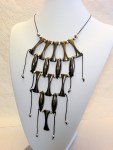 As I mentioned in a previous post, the first necklace was comprised of miscellaneous, one-of-a-kind components I scored at an auction that my dear friend Ann S-P took me to, and it was bound together by knotted cord. It was simply made but had a dramatic flair.