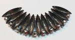 Now, the second modification progressed much more smoothly because I was aware of the challenges involved with inserting the jump rings, and I didn’t use beads this time. Instead, I used the metal puffed oval bars, and “dog bone” bars made of the same material. Despite being made from the same components, the pieces are very different in appearance. As in the first piece, the silver-gray colored jump rings add to the visual appeal by providing color contrast in addition to allowing movement.